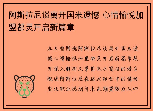 本文围绕“埃贝尔:今夏确信的事项进展顺利,我们期待更多为中心的突破与发展”展开深入论述。文章首先以约三百字的摘要呈现整体观点,概括埃贝尔在当前阶段所展现出的战略方向、团队建设、体系深化以及未来规划上的关键亮点。在摘要之后,正文从四个层面展开:包括夏季部署的整体成效、体系升级的核心动力、团队建设背后的深层逻辑、以及未来发展前景与突破方向。每个部分都由多个自然段细致展开,既保持叙述的层层递进,又始终围...